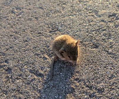 すると帰り道、小さいネズミを発見