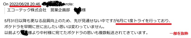 それは、これ。相手社長がエコーテック社、M氏に送ったメールにしっかりと書かれている。
