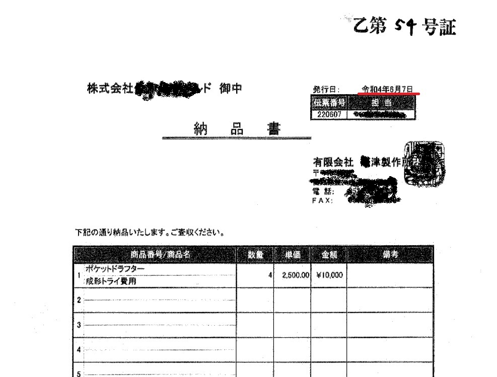 その時、成形品の確認をしてほしいと言われたが、まずは、納期遅延のことが先で成形品を確認したりしたところで