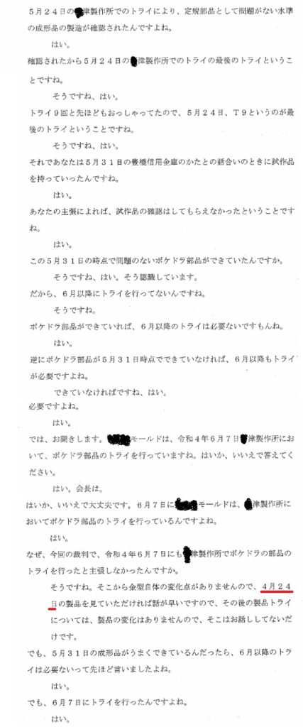 つまり、5月24日以降は改修作業もトライも行っていないと書面で主張。